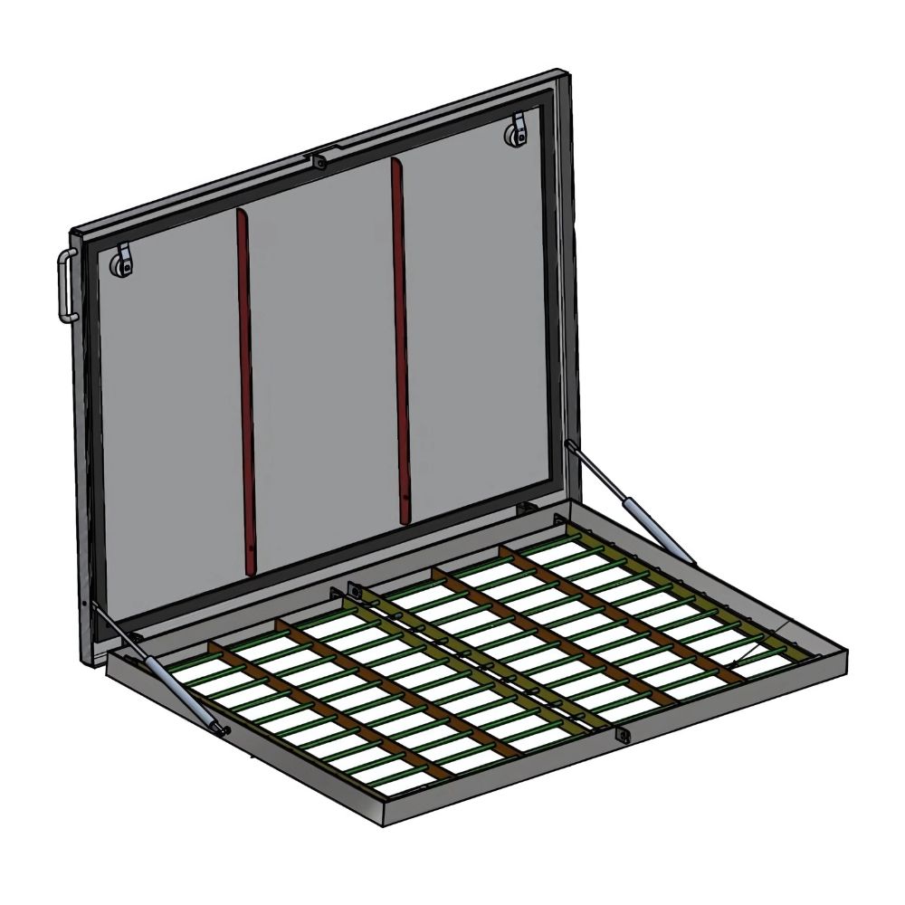 Dit eendelige Tiburon opbouwluik heeft een RVS 304 opbouwrand (⦝ 60x60x6) met verdekte scharnieren en montagegaten. Hierdoor is het een antidiefstal luik. Afhankelijk van de dagmaat heeft het luik een of twee veiligheidsrooster van RVS 304 en een aluminium deksel met een of twee RVS gasveren. De deksel is vervaardigd uit ALMG3 5/6 mm dik tranenplaat en is versterkt met ribben. Hierdoor is de deksel geschikt voor een belasting van 1,5 kN/m². Alle bewegende delen zijn gelagerd met nylon bussen en de neopreen afdichting maakt het luik gasdicht. Het luik wordt geleverd inclusief hangslotvoorziening, knevelsloten, bevestigingsmateriaal en neoprene afdichtband. Op aanvraag is het ook mogelijk om dit luik in RVS 316 uit te laten voeren.